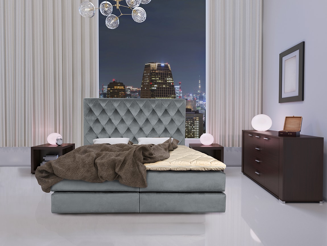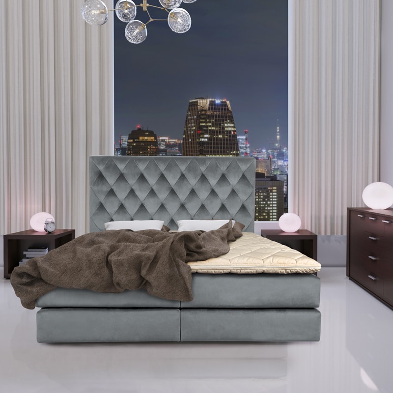 *Patul Boxspring Lugano din fotografie este realizat pe nuanta de catifea "cd.16"